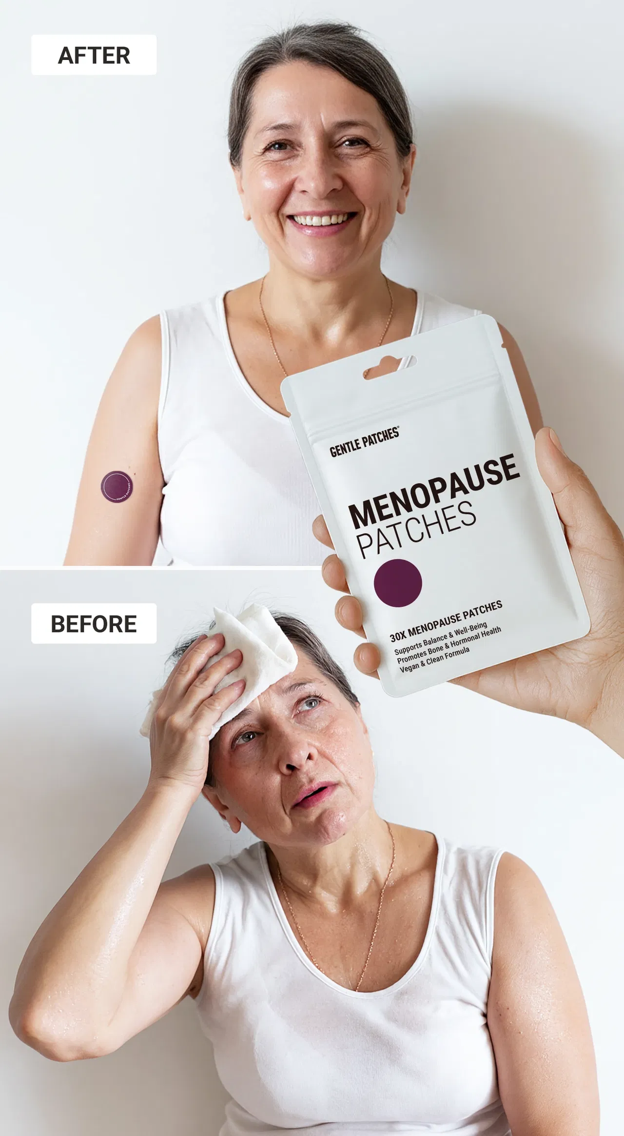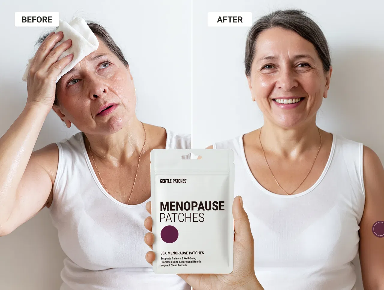 WATCH YOUR DAYS SHIFT FROM “HOT, TIRED, AND IRRITABLE” TO “CALM AND IN CONTROL” — WITH GENTLE PATCHES MENOPAUSE